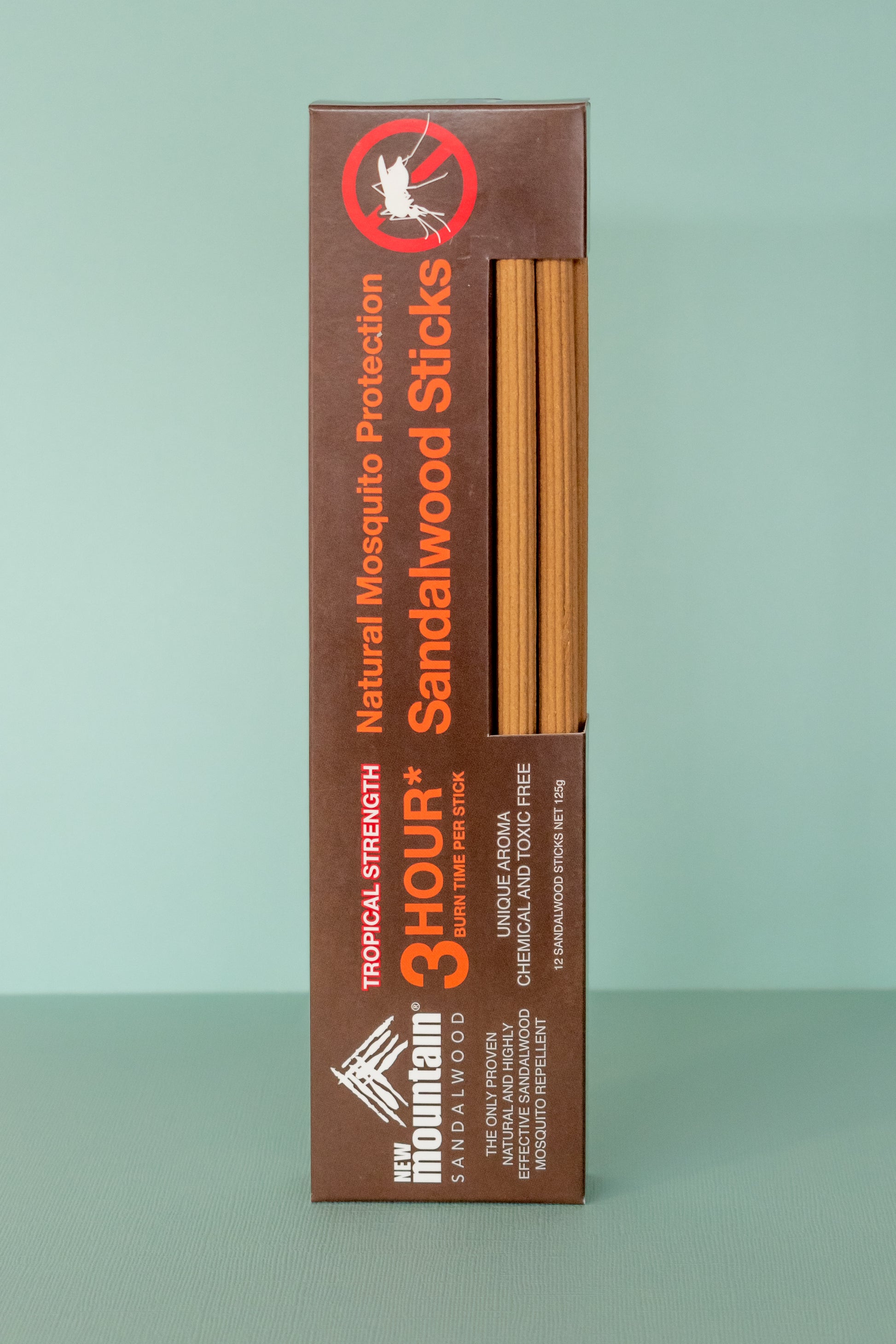 The Sandalwood used in New Mountain Mosquito sticks is from wild sandalwood that has naturally died. No chemicals, DEET or DEP. Safe to use around children and pets.